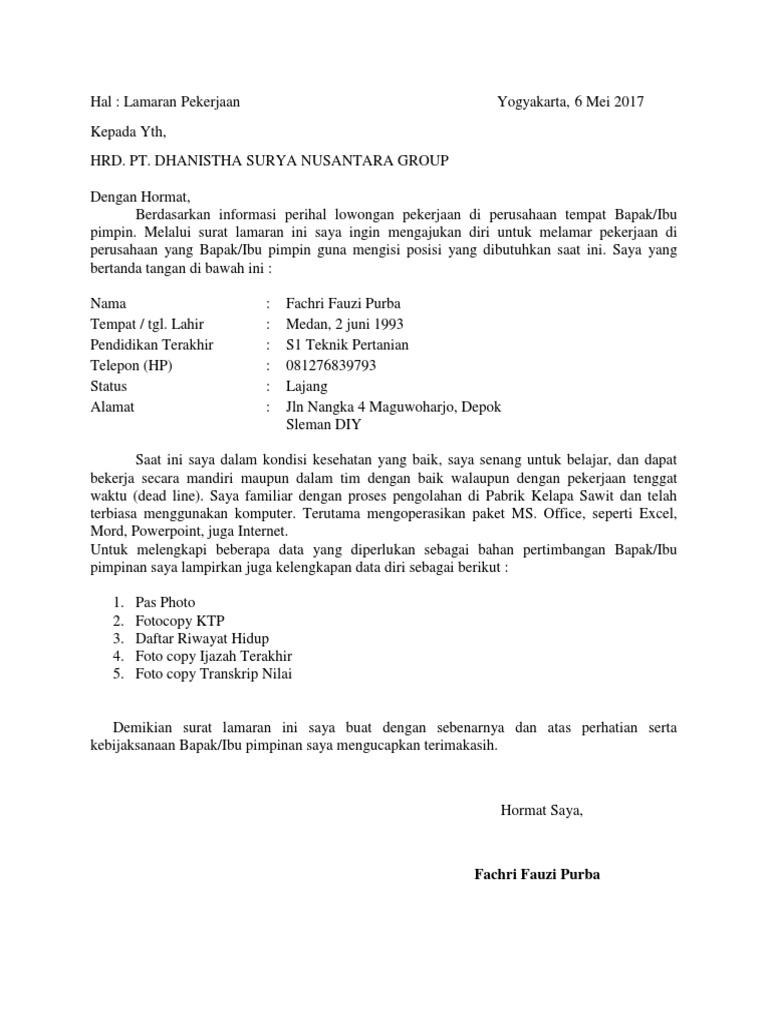 Surat Lamaran Kerja Untuk Operator Kerja Panduan Belajar Surat