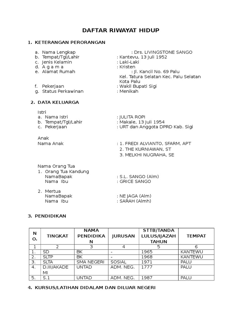 Contoh riwayat hidup dalam bentuk narasi RIWAYAT HIDUP. Status Hidup IIITANDA JASA PENGHARGAAN N No am Bintang Lencana Penghargaan Surat Kep ut san T h n Perolehan Nama Negara Instansi yang memberikan N om r Tanggal IVRIWAYAT KELUARGA 1. 15 Contoh Daftar Riwayat Hidup Curriculum Vitae Sederhana.