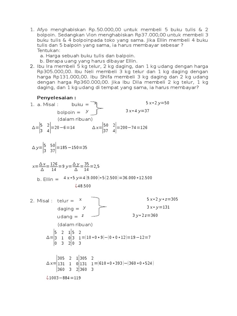 Materi Matematika ini perlu dipelajari karena sering keluar dalam soal soal ujian baik Ujian Sekolah maupun Ujian Nasional. Xy î r dan x 2y 4. Seseorang membeli 4 buku tulis dan 3 pensil ia membayar Rp1950000.