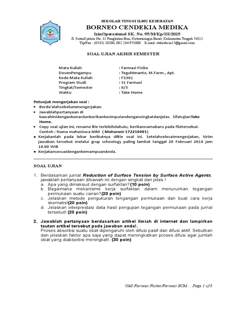 Contoh Soal Dan Jawaban Farmasi Fisika – Nah contoh soal tes ujian skb cpns ini sekitar 50 75 nya hampir sama dengan soal uji kompetensi ukom kedokteran gigi. Farmasi fisika 5 petunjuk jawaban latihan untuk membantu anda dalam mengerjakan soal latihan tersebut silakan pelajari kembali materi tentang 1 pengertian ilmu farmasi fisika. Contoh soal fisika sekolah terbaru home farmasi skripsi 50 contoh judul skripsi jurusan farmasi. Berikut ini merupakan beberapa pertanyaan terkait artikel yang diposting dalam blog ini. Contoh soal soal dan kunci jawaban soal fisika. Contoh sediaan yang mennujukkan reaksi kinetika orde nol adalah suspensi diman konsentrasi dari sediaan ini bergantung pada..