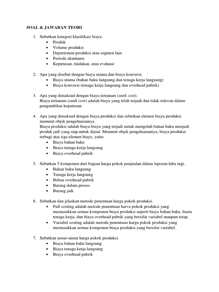 Itulah yang dapat kami bagikan terkait contoh soal teori produksi dan jawabannya. Pt lestari jaya adalah perusahaan yang bergerak dalam bidang percetakan dengan menggunakan metode harga pokok pesanan. Soal Dan Jawaban Akuntansi Harga Pokok Penjualan Harga pokok penjualan rp9 600 000.