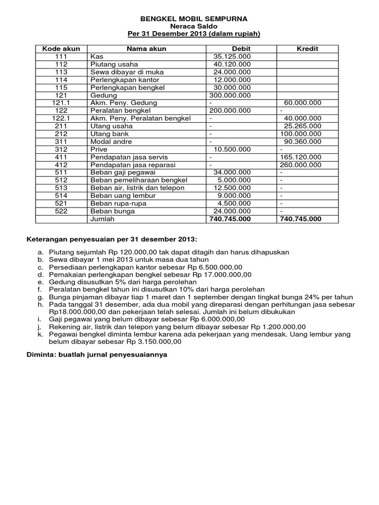 Contoh Soal Jurnal Penyesuaian Perusahaan Jasa Dan Dagang
