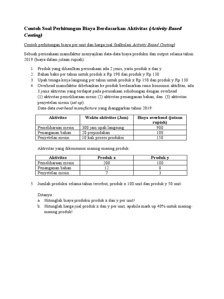 Contoh Soal Perhitungan Biaya Berdasarkan Aktivitas Pdf