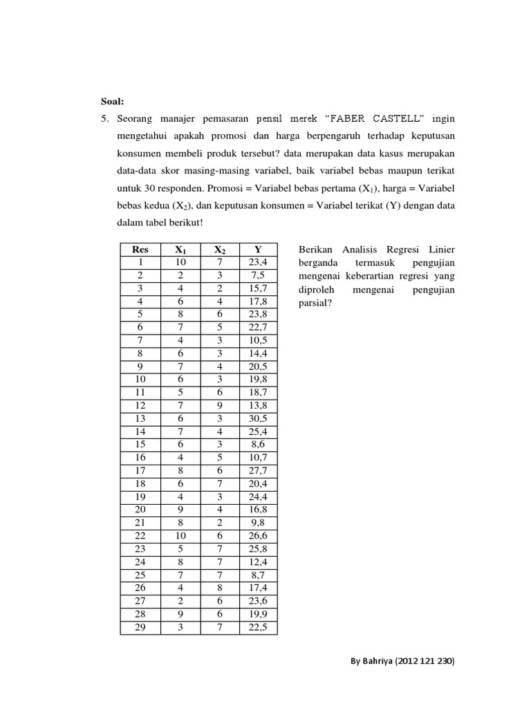 Contoh Soacontoh Soal Analisis Regresi Linear Sederhanal Analisis Regresi Linear Sederhana Pdf