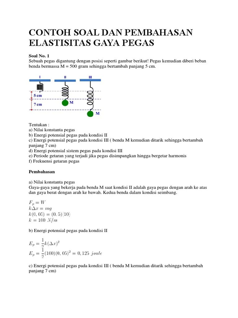 Elastisitas fisika pengertian rumus hukum hooke dan contoh soal. Diakses tanggal 29 oktober 2018. Soal latihan semester 2 kelas x.
