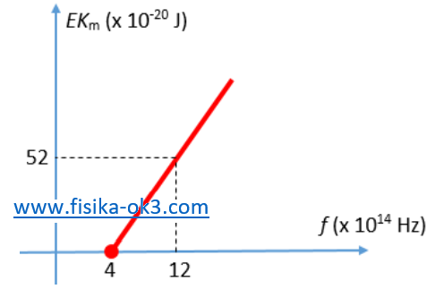 Grafik hubungan energi kinetik maksimum elektron dengan frekuensi dapat. Jika pada logam target dikenai foton dengan Panjang gelombang 4000 Angstrom maka electron foto yang terlepas memiliki energi kinetic maksimum sebesar. Grafik hubungan energi kinetik maksimum elektron dengan frekuensi dapat.