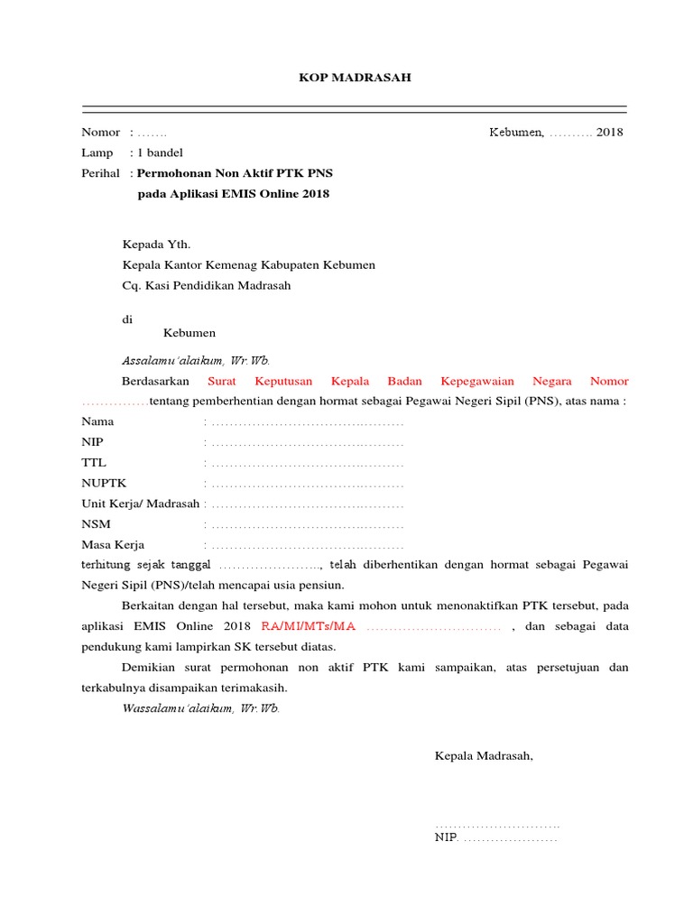 Contoh Surat Penonaktifan Guru Di Emis 4 0