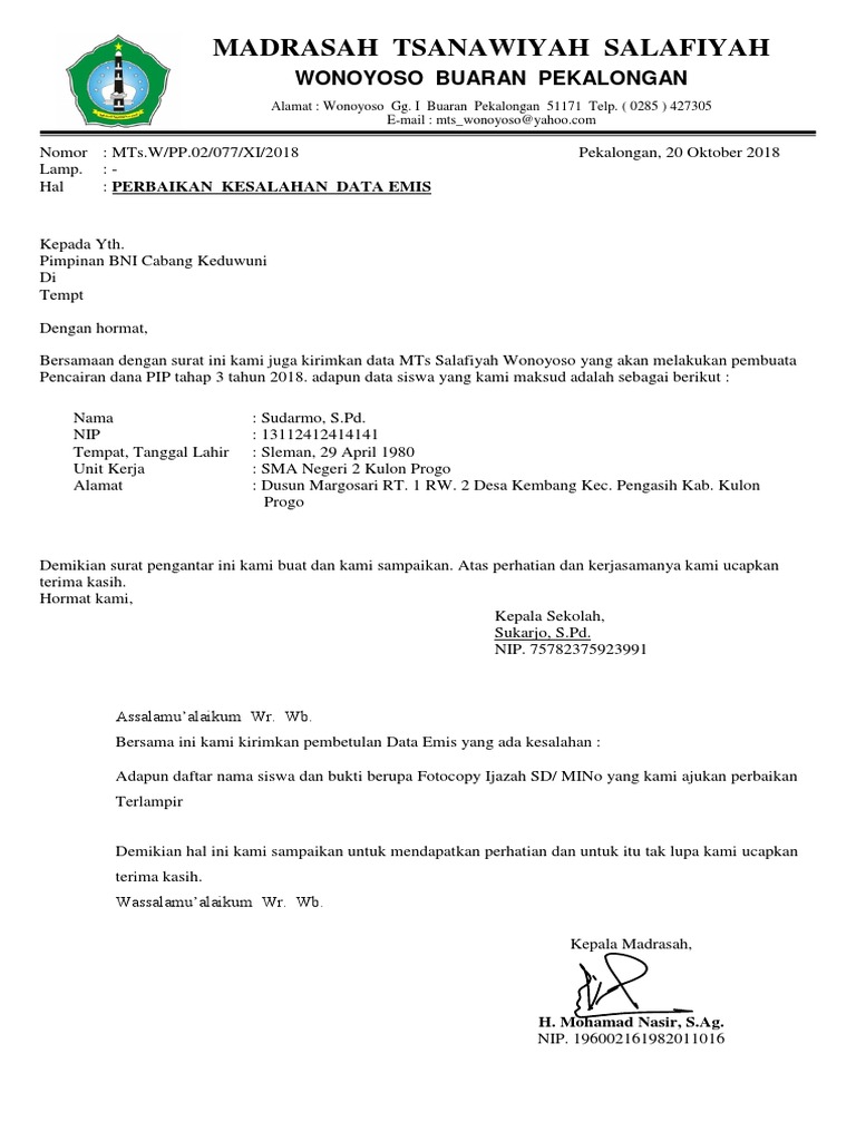Surat tersebut berisikan pernyataan bahwa siswa yang diinput ke dalam Aplikasi EMIS adalah benar. Kemudian Pilih menu Mutasi. Download Contoh Data Nominatif dan Formasi Guru.