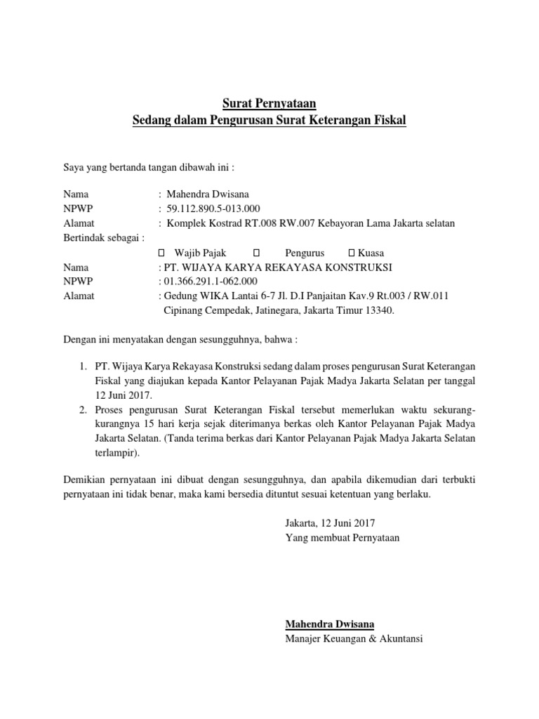 Contoh Surat Keterangan Fiskal Pdf Contoh Surat