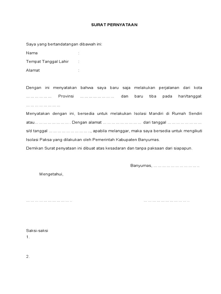 Surat Pernyataan Isolasi Mandiri Covid 19 Pdf