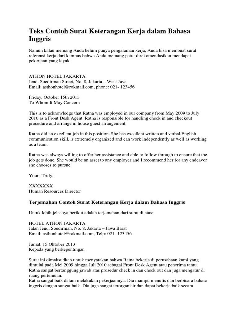 Teks Contoh Surat Keterangan Kerja Dalam Bahasa Inggris Pdf