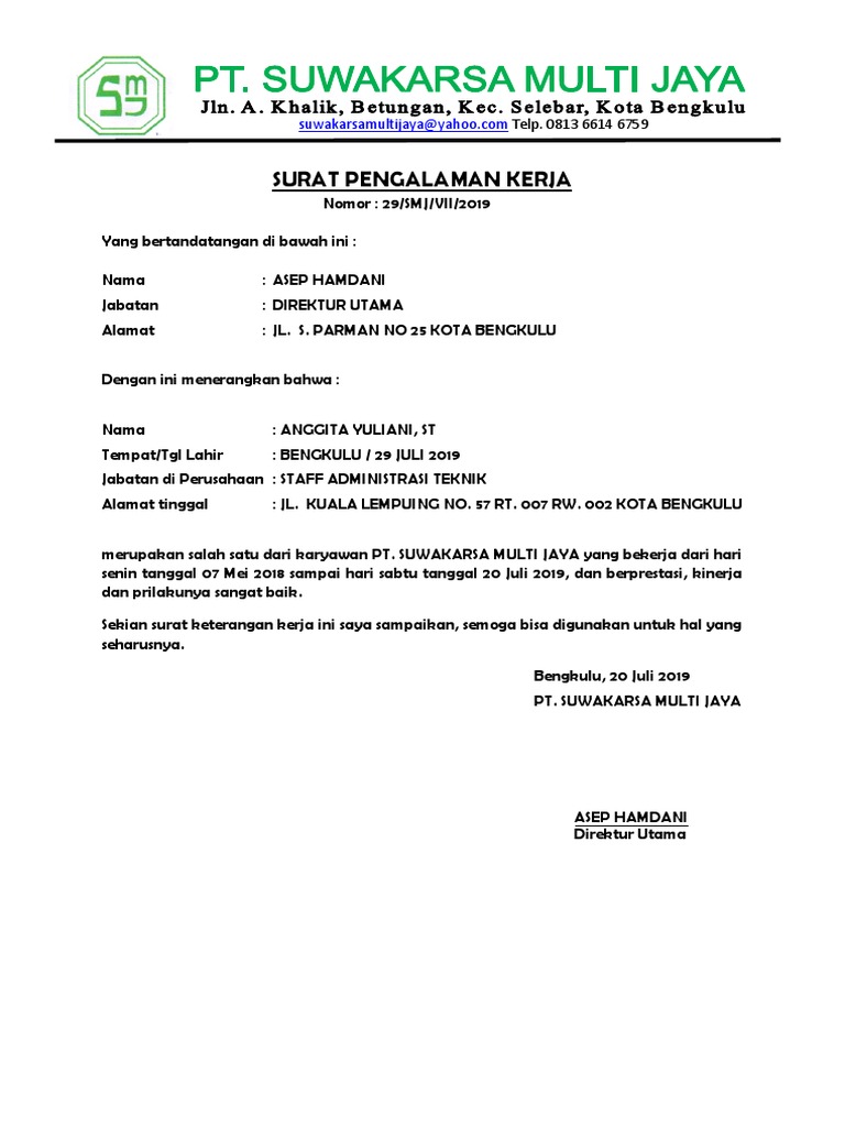 Contoh Surat Keterangan Pengalaman Kerja Pdf