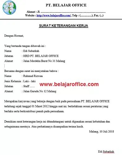 Contoh Surat Keterangan Kerja Koperasi Kumpulan Contoh Surat Dan Soal Terlengkap