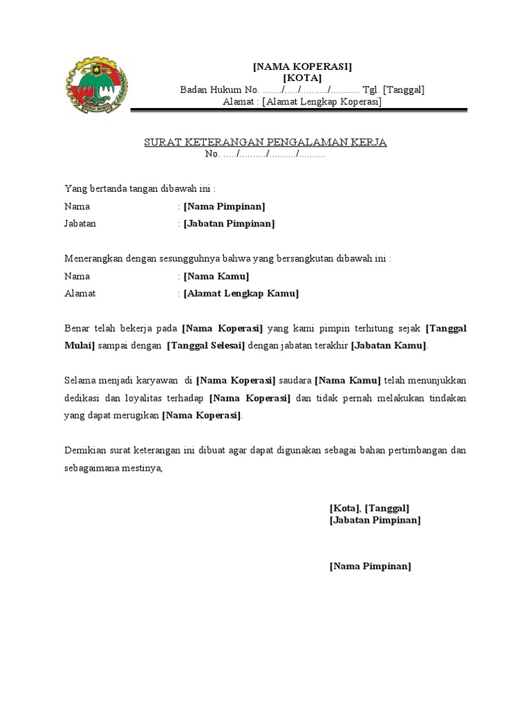 4 Contoh Bukti Surat Pengalaman Kerja Perusahaan Lengkap Mamikos Info. Contoh Surat Pengalaman Kerja Koperasi Surat pengalaman kerja ini akan menjadi salah satu faktor penting yang akan dipertimbangkan oleh perusahaan yang akan merekrut karyawan baru. Berikut ini adalah contoh Surat Perjanjian Peminjaman Uang.