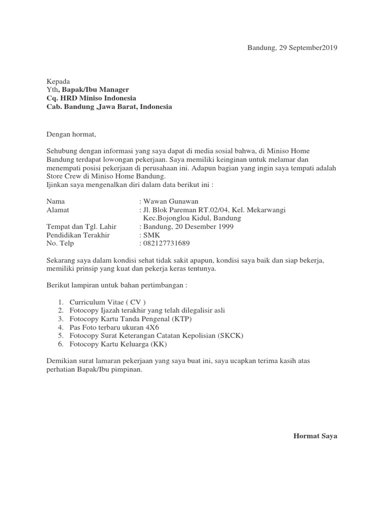Contoh Surat Lamaran Kerja Miniso Surat Lamaran Kerja Desain Contoh Surat Y2n6qew8ok