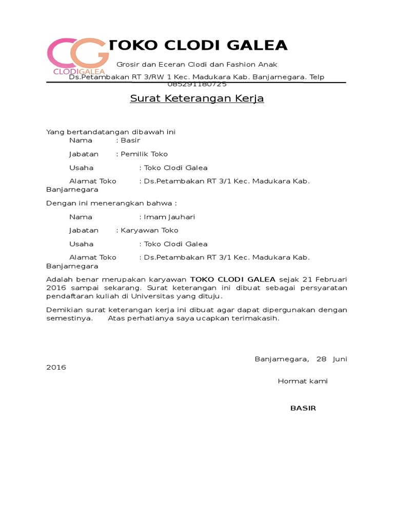 Contoh Surat Keterangan Kerja Di Toko Nusagates
