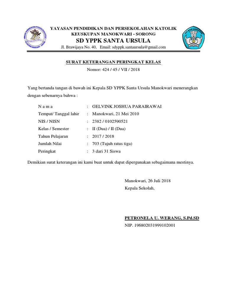 Contoh Surat Keterangan Peringkat Dari Sekolah Pdf