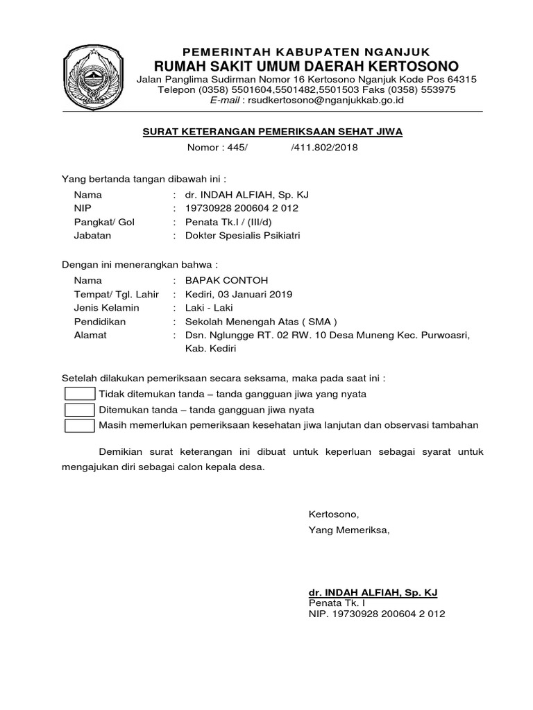Contoh Surat Keterangan Sakit Jiwa Dari Dokter Nusagates