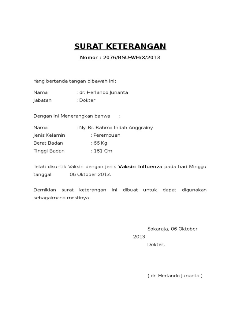Contoh Surat Pernyataan Imunisasi Contoh Surat