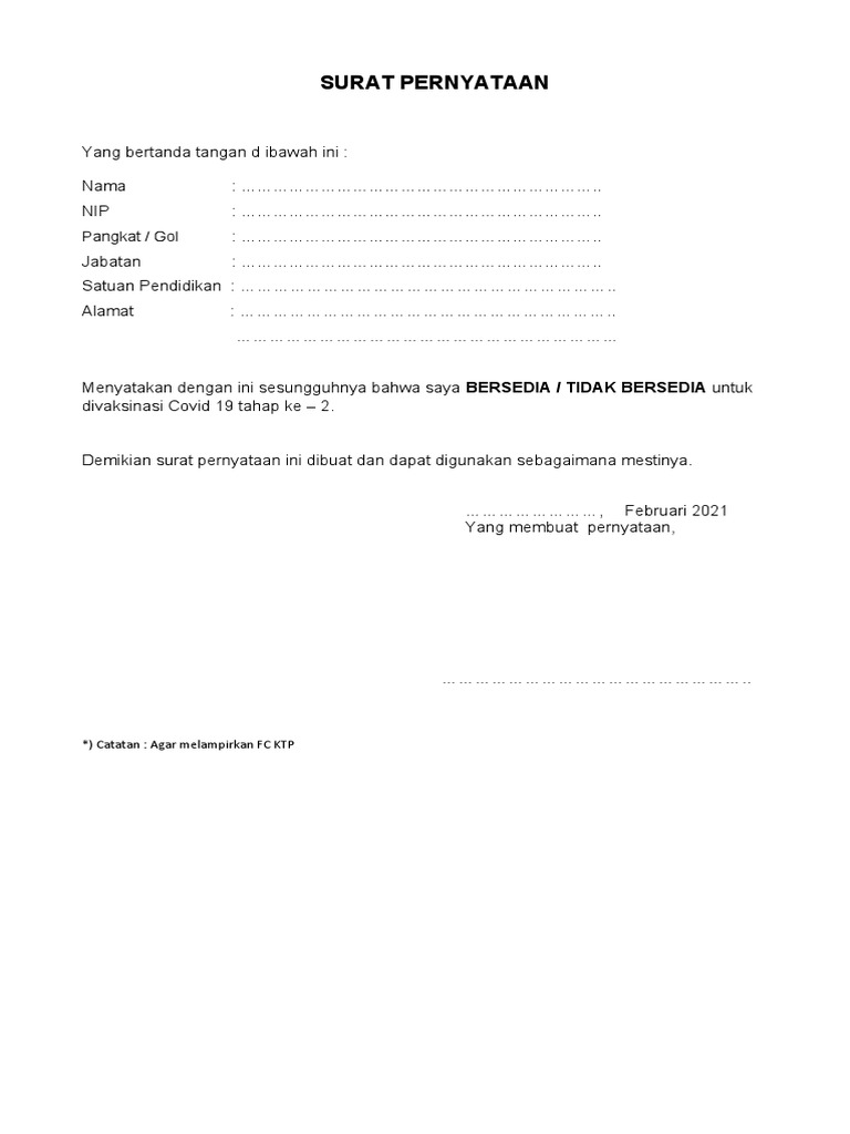 Surat Pernyataan Untuk Vaksin Covid 19 Pdf