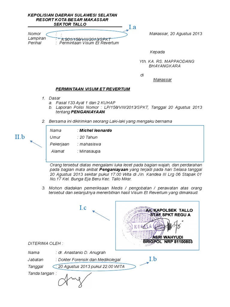 Surat Keterangan Visum Et Repertum Format Unhas Korban Hidup. Setiap jenis surat memiliki format dan isi yang berbeda sehingga perlu peninjauan lebih detail dan teliti yang disesuaikan dengan subjek dan kebutuhan pembuatan surat. Hasil pemeriksaan forensik kecelakaan lalulintas atas tn.