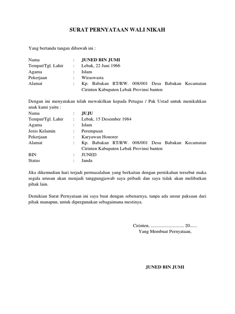 Contoh Surat Pernyataan Wali Nikah Kumpulan Contoh Surat Dan Soal Terlengkap