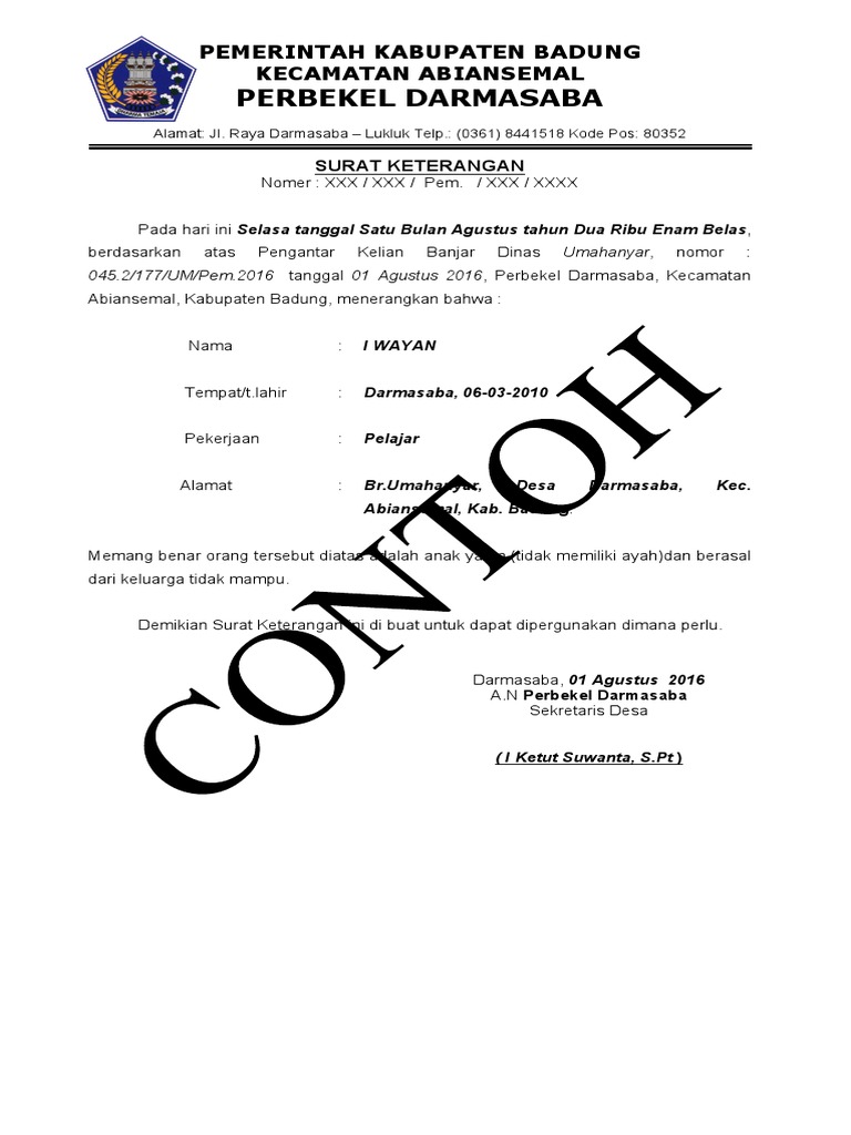 Contoh Surat Keterangan Anak Yatim Piatu Kumpulan Contoh Surat Dan Soal Terlengkap