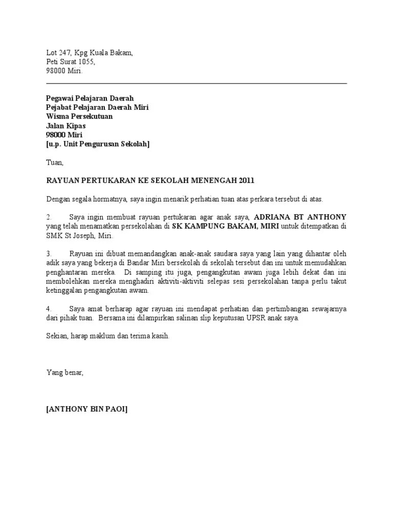 Surat rasmi rayuan pertukaran sekolah antara surat rasmi rayuan pertukaran sekolah dalam surat rasmi rayuan pertukaran sekolah rendah surat rasmi rayuan pertukaran.