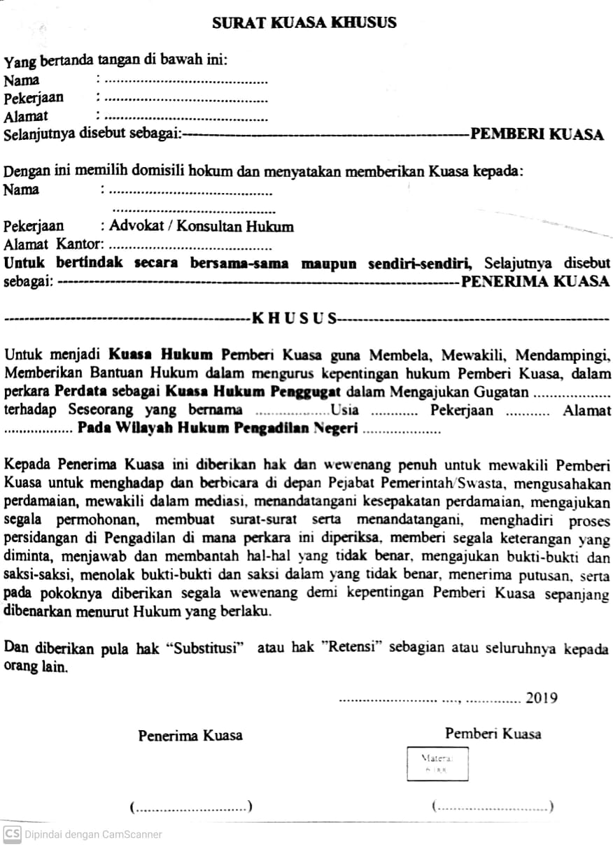 Gambar Contoh Surat Kuasa Khusus Perdata Pmh Terbaik 2019. Contoh Surat Gugatan Wanprestasi Untuk Awam Abi Awam Bicara. Dimana surat kuasa diberikan untuk kepentingan dan atas nama pemberi kuasa untuk dan dalam hal terbatas yang bersifat khusus pada hal-hal yang tertuang pada surat kuasa tersebut.