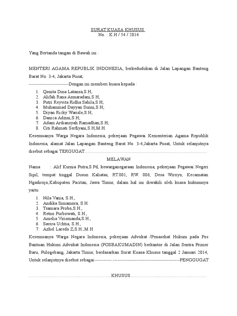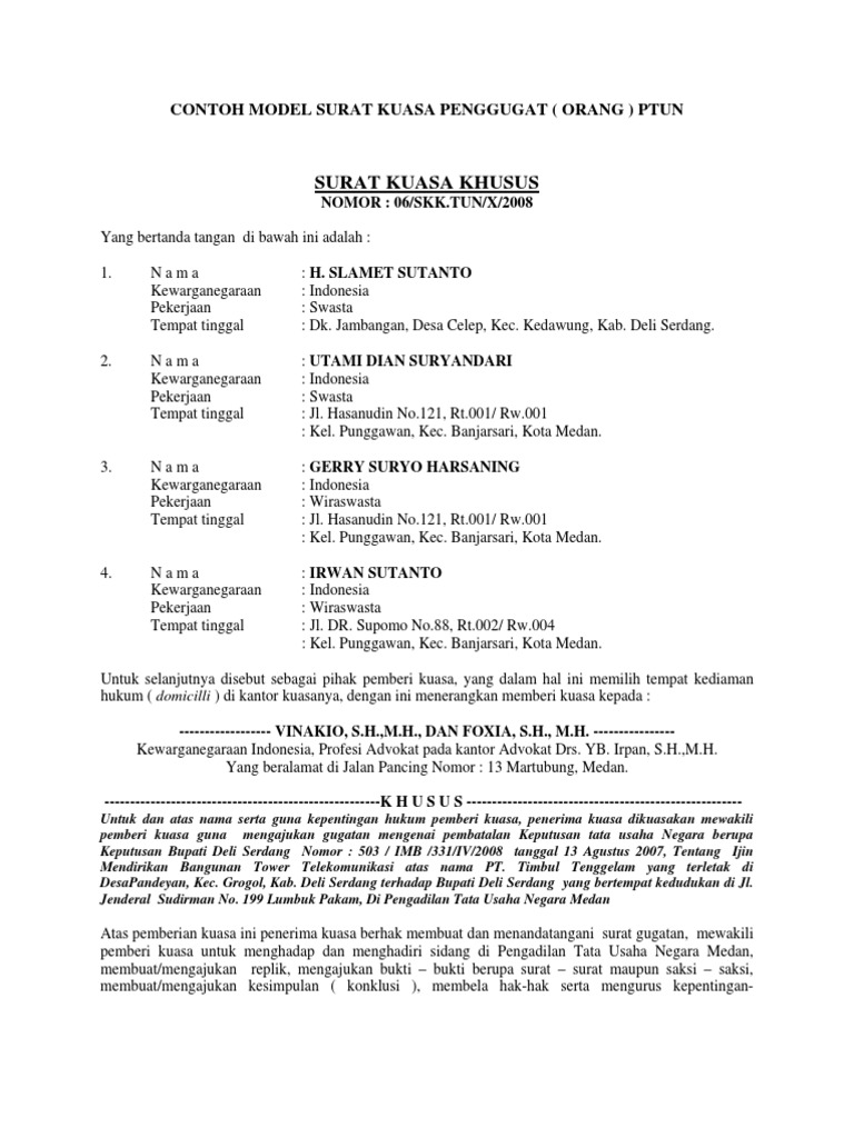 Contoh Surat Kuasa Khusus Dan Gugatan Tata Usaha Negara Pdf
