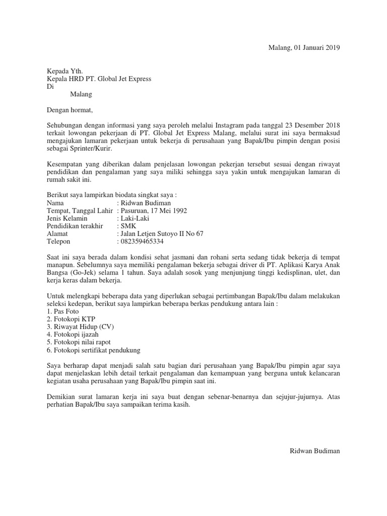 Views Contoh Surat Lamaran Kerja Kurir Update Hutomo