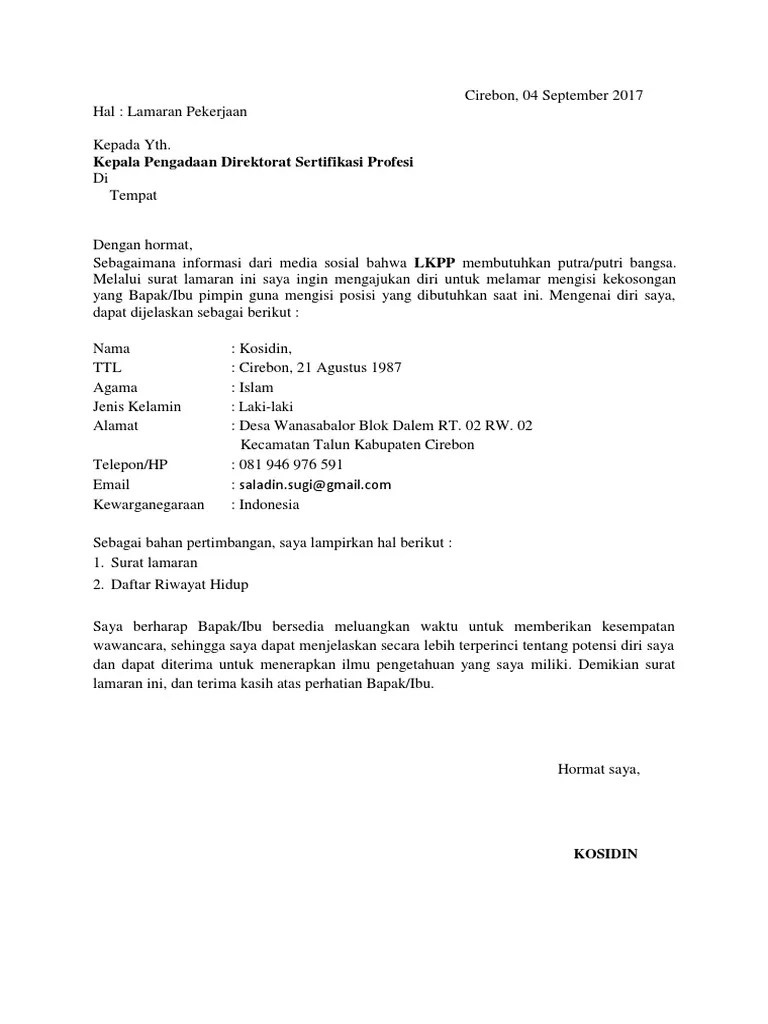 Mudah mudahan isi postingan artikel contoh cv artikel contoh daftar riwayat hidup artikel contoh lamaran kerja artikel contoh surat izin sekolah artikel contoh surat lamaran artikel contoh surat lamaran kerja artikel contoh surat lamaran. Surat lamaran cpns lkpp hallo sahabat contoh surat lamaran kerja cpns pada artikel yang anda baca kali ini dengan judul surat lamaran cpns lkpp kami telah mempersiapkan artikel ini dengan baik untuk anda baca dan ambil informasi didalamnya. Contoh surat lamaran bahasa indonesia 4.