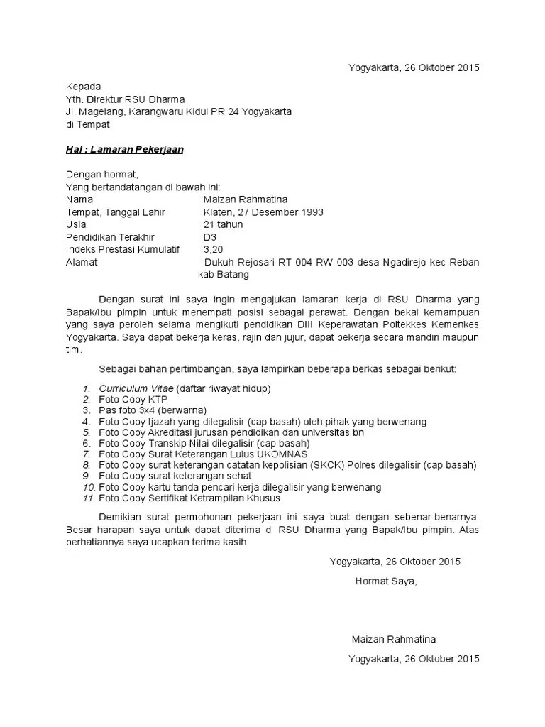 Contoh Surat Lamaran Rs 2015 – Dengan hormat yang bertanda tangan di bawah ini. Contoh surat lamaran kerja 2020. Contoh surat lamaran kerja surat lamaran kerja yang baik dan benar merupakan salah satu modal awal yang menentukan apakah kamu akan dipanggil untuk menuju ke tahapan lamaran kerja berikutnya yakni wawancara bersamaan dengan artikel ini kami menyajikan 50 contoh surat lamaran kerja yang didesain dengan baik dan semoga contoh surat lamaran kerja ini dapat membantu anda mendapatkan pekerjaan. Bagitu bayak contoh surat lamaran kerja yang berada diinternet bahkan kita bingung untuk memilih mana yang bener dan terbaru. Contoh surat lengkap surat ijin surat lamaran kerja perintah resmi permohonan keterangan undangan dinas niaga jalan dukungan pengantar. Sabtu 03 januari 2015..
