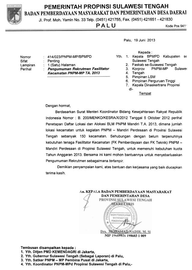 Pasalnya surat tersebut membuat para fasilitator program nasional pemberdayaan masyarakat mandiri perdesaan atau pnpm harus diputus kontrak per 31 desember 2014. Dalam melaksanakan tugasnya fm berkoordinasi dengan tamk. Jika benar anda bisa melihat contoh suratnya dibawah ini.