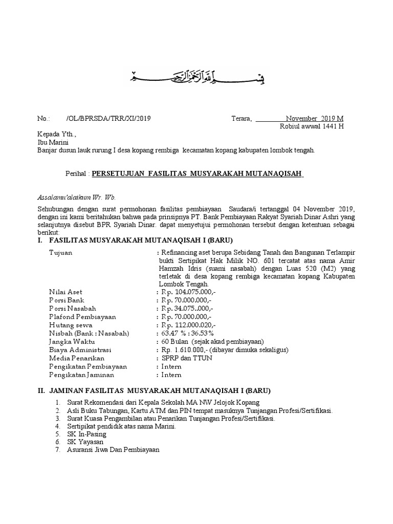 Contoh Surat Penawaran Rumah Spr Untuk Kpr Surat Penawaran
