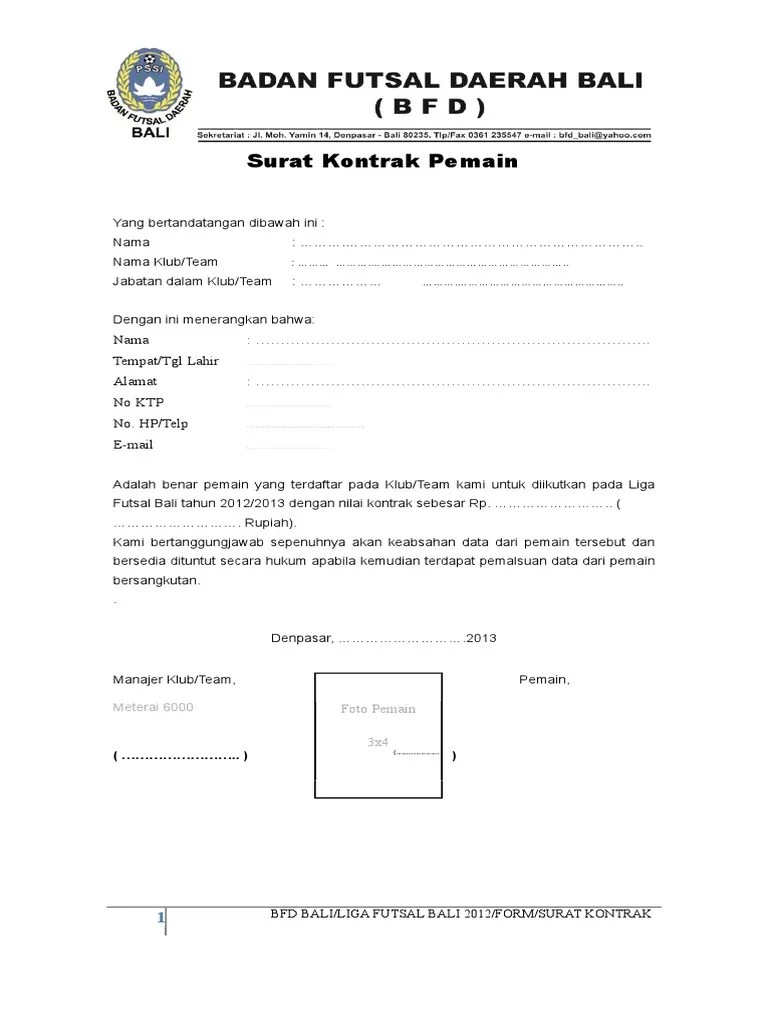 Contoh Surat Perjanjian Futsal – Contoh surat pernyataan futsal. Dalam sebuah kesepakatan baik itu dilakukan antar perorangan atau perusahaan adanya perjanjian dalam bentuk tertulis adalah hal yang utama. Home kontrak kerja contoh surat pernyataan futsal. Berikut ini contoh surat yang baik dan benar serta menarik perhatian yang dapat anda gunakan dalam tema maupun format penulisan surat. Contoh surat perjanjian kontrak tim futsal arsene wenger. Dalam bisnis jasa penyewaan sudah lumrah apabila terdapat permintaan dari customer untuk melakukan pemesanan booking..