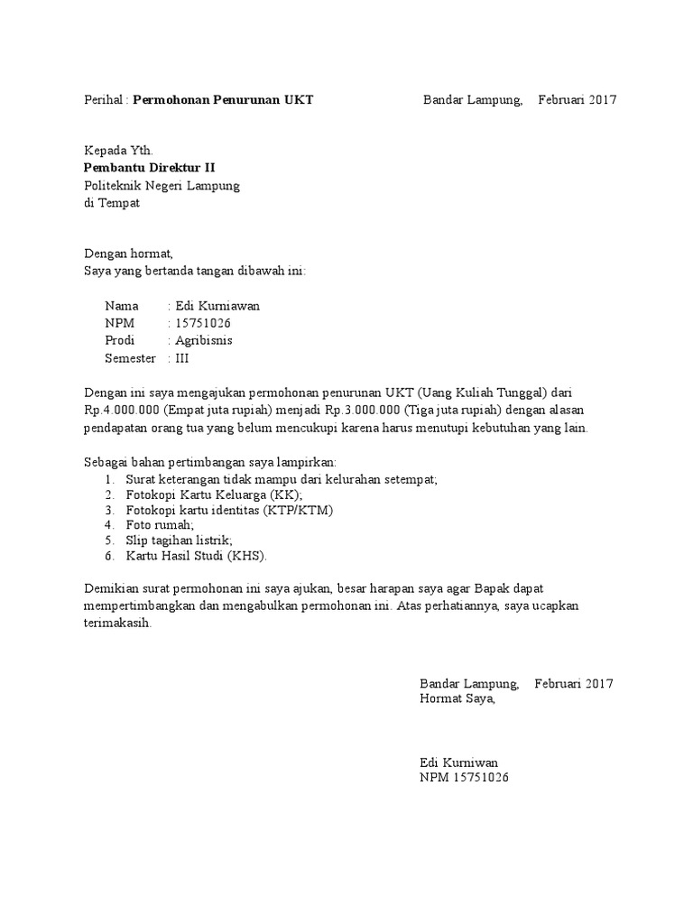 Contoh Surat Permohonan Penurunan Ukt Nusagates