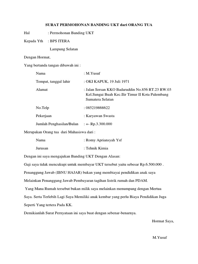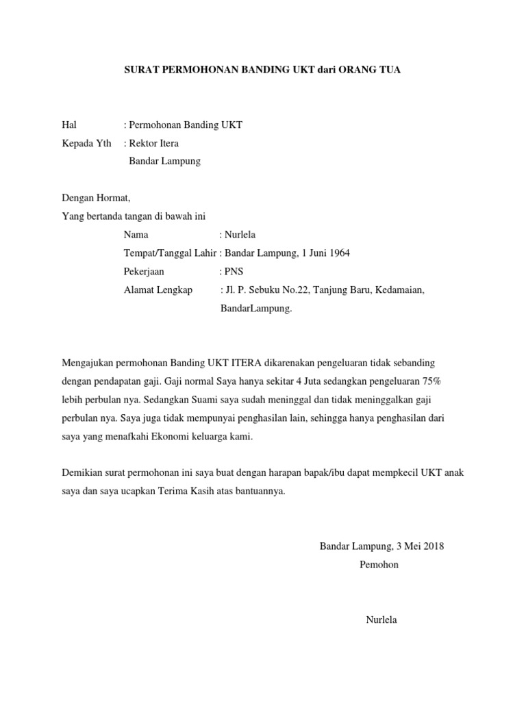 Surat Permohonan Banding Ukt Dari Orang Tua Pdf