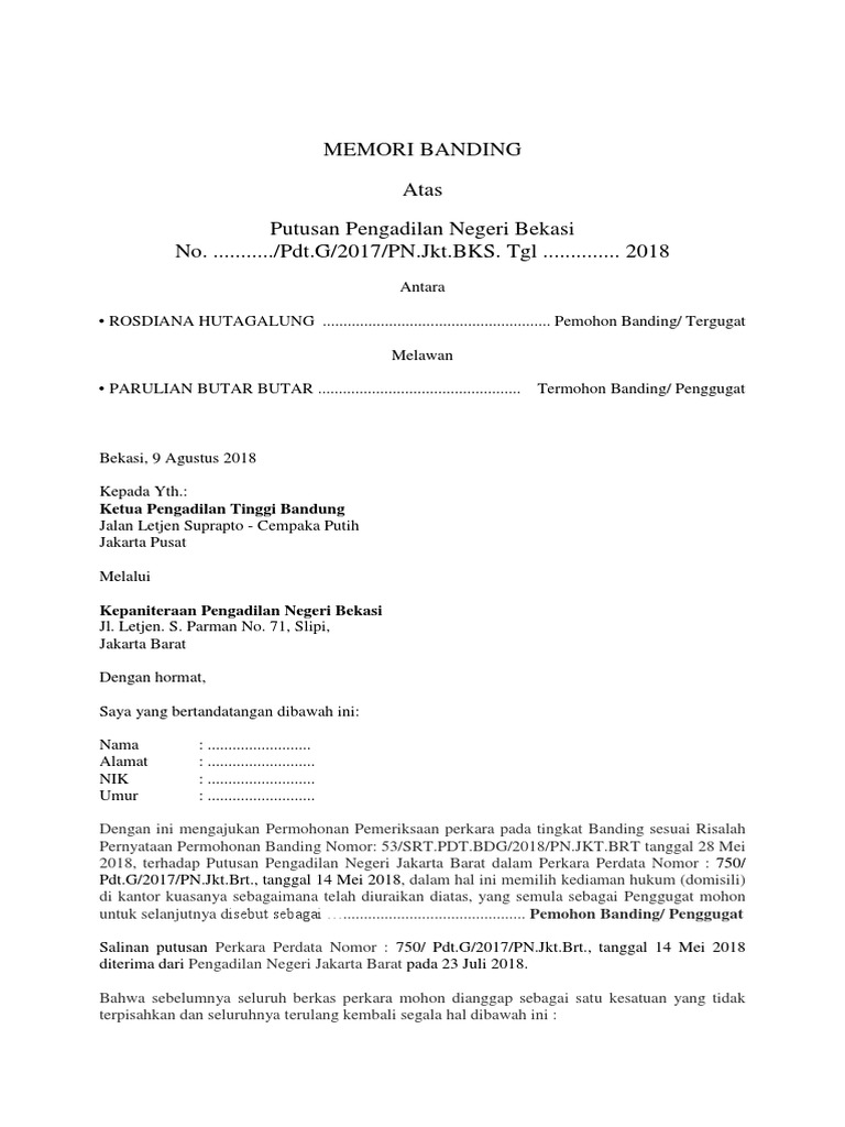 Contoh Surat Permohonan Kunjungan. Memori banding adalah upaya hukum yang dilakukan apabila salah satu pihak tidak puas terhadap putusan Pengadilan Negeri. Padang jumat tanggal 30 juli 2021 bertempat di ruang media.