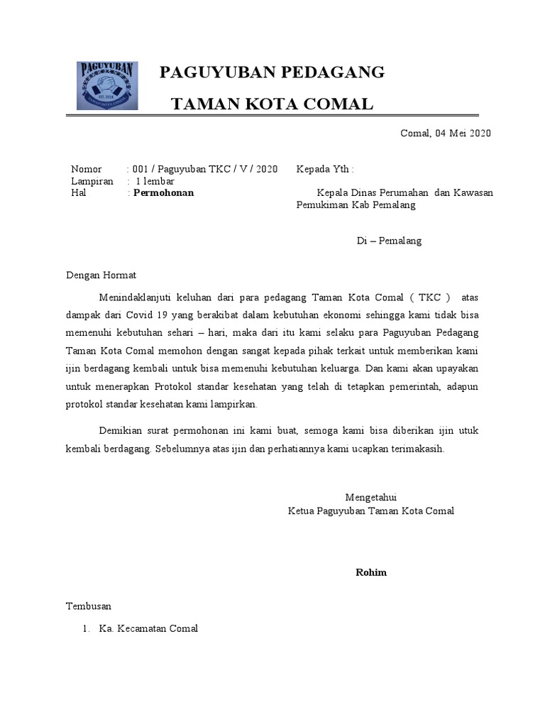 Surat Permohonan Paguyuban Pedagang Pdf