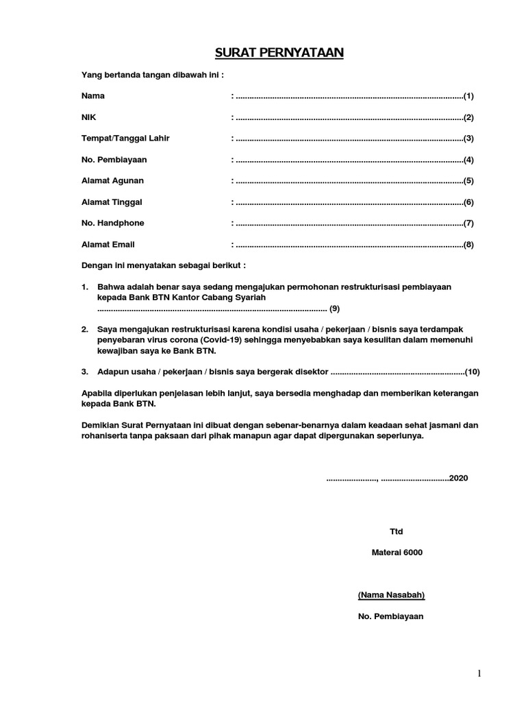 Surat Pernyataan Terdampak Covid 19 Pdf