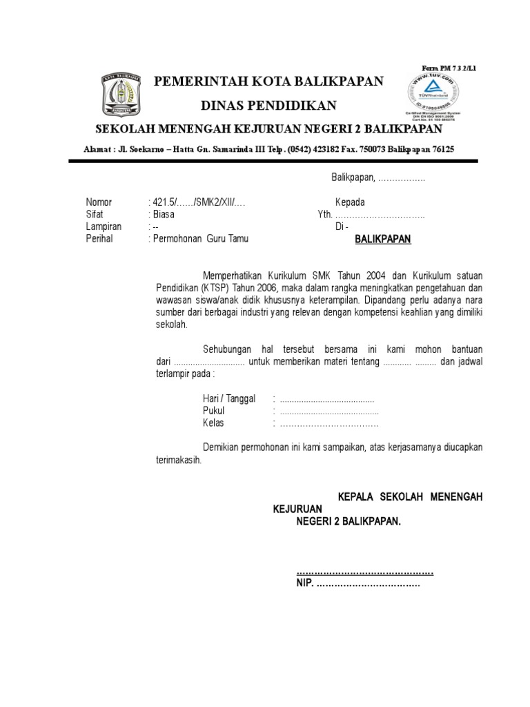 Surat Permohonan Guru Tamu Pdf