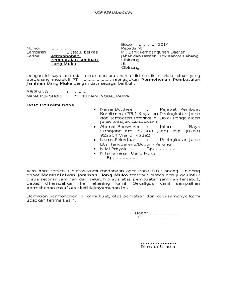Permohonan Pembatalan Jaminan Bank Pdf