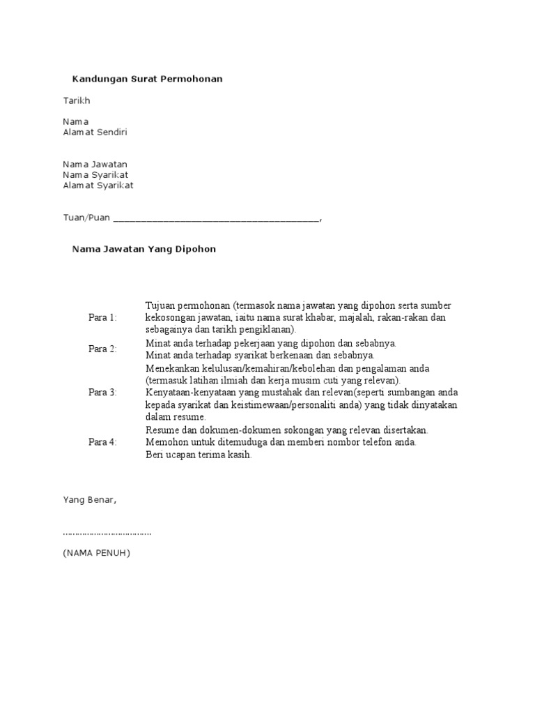 Format Contoh Surat Memohon Kerja Pdf