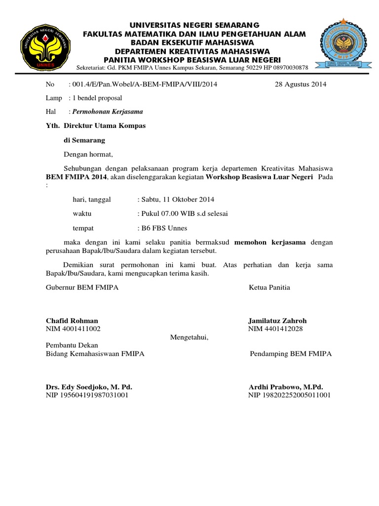 Contoh Surat Permohonan Kerjasama Antar Organisasi Surat Pendidikan Fisika