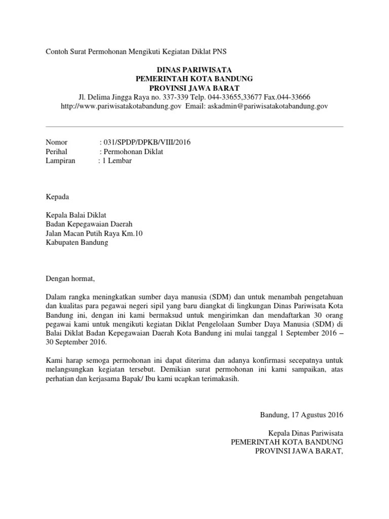 Contoh surat permohonan mengikuti kegiatan diklat pns.