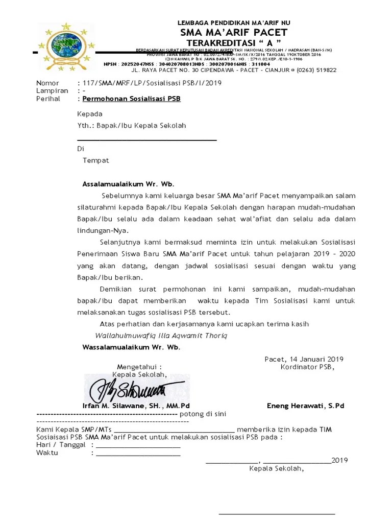 Contoh surat permohonan dalam hidup kita pasti sering yang mananya dihadapkan dengan sebuah masalah. Contoh surat permohonan sosialisasi ppdb kop sekolah nomor. Contoh surat permohonan sosialisasi toefl.