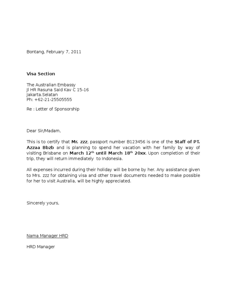 Contoh Surat Sponsor Visa Australia Ydhartono Com