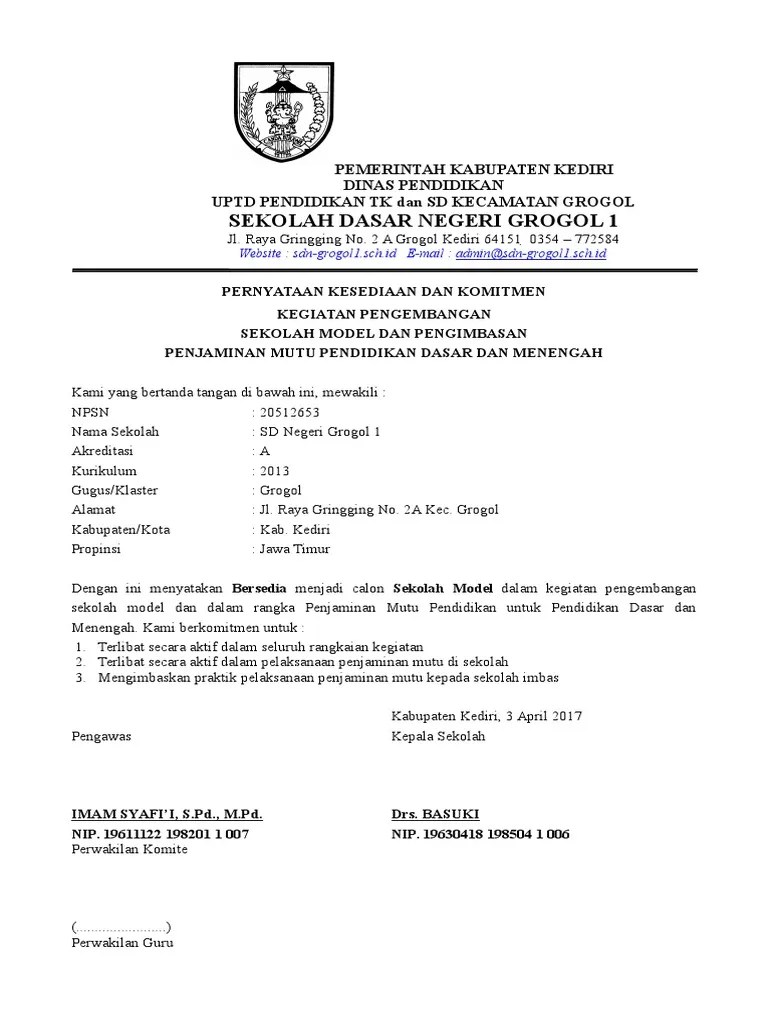 Contoh surat pernyataan kepala sekolah kesanggupan untuk diakreditasi. Pernyataan kepala sekolah nomor. Seperti contoh surat pernyataan kesanggupan untuk dapat mentaati peraturan sekolah ataupun tempat kerja surat pernyataan kesanggupan akan membayar ukt dan lainnya. Download contoh surat lamaran kerja pdf.