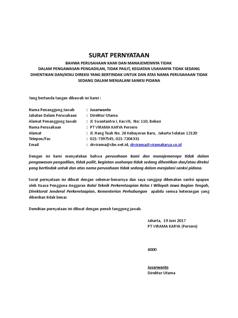 Contoh surat pernyataan perusahaan pailit. Ketua pengadilan niaga pada pengadilan negeri jakarta pusat jalan gajah mada nomor 17 jakarta hal. Dan jangan lupa baca juga contoh surat pernyataan diri surat pernyataan praktikum atau surat pernyataan ijin orang tua sebagai tambahan referensi surat anda. The collection that comprising chosen picture and the best among others.